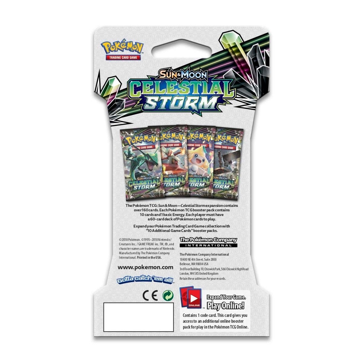 Watch out for the vortex! It’s a season of furious emerald storms and a sky alive with portents, as Pokémon and creatures from Ultra Space clash. Some ride the storm, and others defy it…face the winds of change head-on in the Pokémon TCG: Sun & Moon—Celestial Storm expansion!
