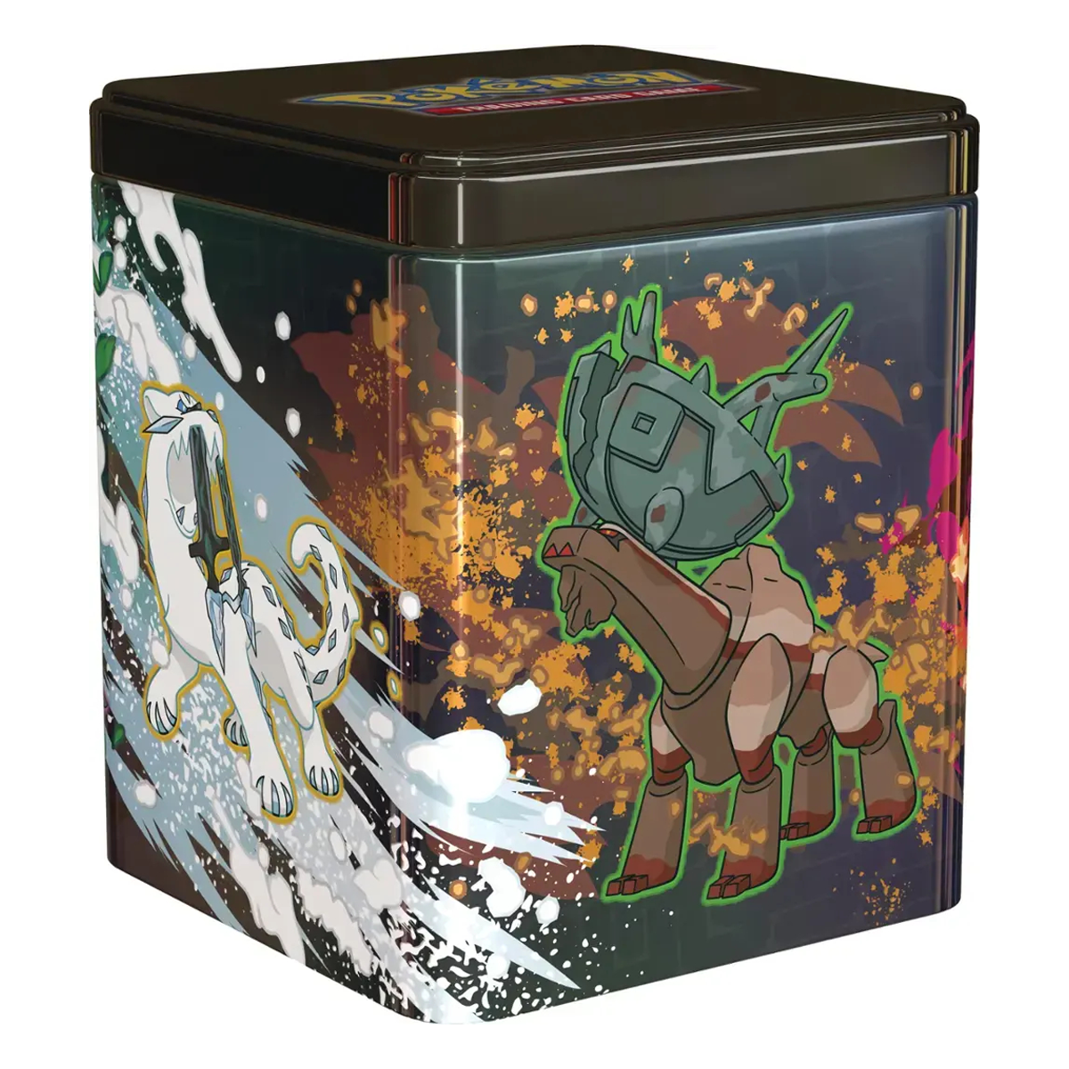 Choose a tin with powerful Pokémon from Paldea or Kitakami: the fearsome Treasures of Ruin, mysterious Paradox Pokémon, or feisty Ogerpon and its masks! This handy Pokémon TCG: Stacking Tin stacks neatly with others and contains: